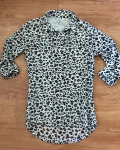 Camisa Leopard Print en fondo blanco, tela ligera y vaporosa. Mangas que se enrollan y sostienen en botón o lo puedes usar con la manga larga. Talla M/28 de Stradivarius. MEDIDAS: axila a axila 50cm largo 64cm adelante y 68cm atrás. La puedes llevar formar o casual, como en fotos ilustrativas o deja volar tu imaginación ❤️ EL MEJOR PRECIO ES EL PUBLICADO, pero abierta a ofertas justas y razonables. PRENDAS NUEVAS no puedo bajarme demasiado. PRENDAS C/ USO quizas podamos negociar (aunque tengo pocas) Ten x seguro q conmigo te estás llevando ALGO BIEN (ni ropa de paca, ni cosas para la basura) Muchas Gracias
