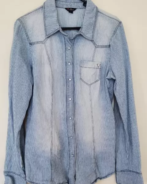 Camisa de mezclilla manga larga marca Guess en excelente estado