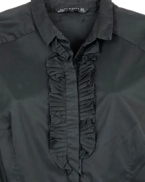 Camisa negra Zara. Hermosa camisa negra con detalle de olanes en el pecho, es de botones y literal tiene solo una puesta.