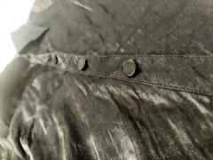Camisa Negro Brillante. Camisa 75% rayon color negro, entallada, con mangas de holan y botones forrados en tela.