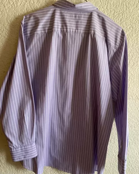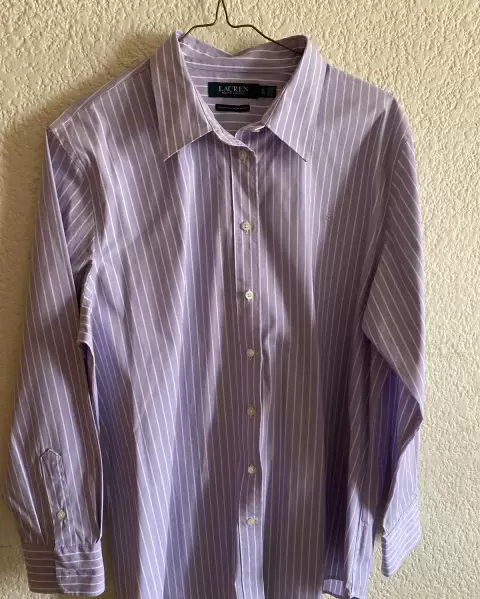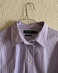 Camisa Ralph Lauren. Blusa de manga larga, 100% de algodón , el fondo es color lila y las rayas blancas . Úsala para casual o formal