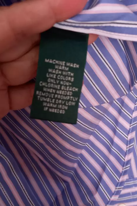 Camisa Ralph Lauren Non Iron. Algodón, motivo de franjas estilo caramelo, logo bordado en el pecho, cuello clásico, cierre con botones en la parte delantera y dobladillo curvo. Talla XS , nueva con etiqueta.