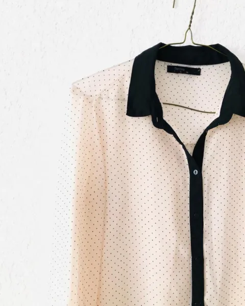 Camisa rosa bershka. Bonita camisa, rosa clarito con puntos negros, es larga y muy delgada, luce muy bonita