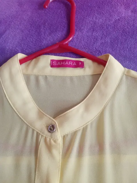 Camisa amarilla, Sahara, talla 9, usada solo. Le falta un botón y lo que se ve en las fotos.