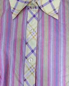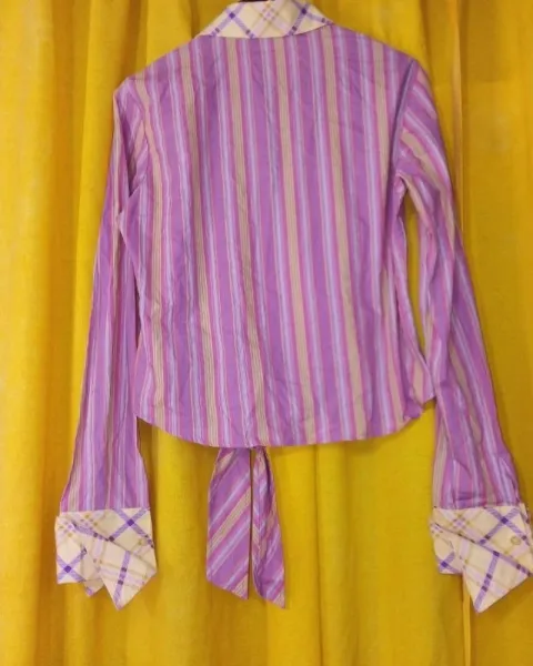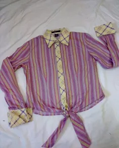 Camisa vaquera multicolor. Hermosa blusa vaquera de manga muy larga, de algodón en colores pastel. Abotonada, detalle decorativo en los puños, se puede usar suelta o amarrada al frente