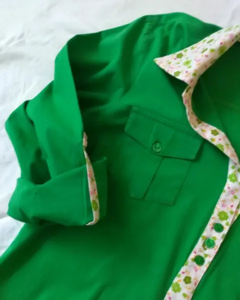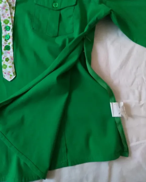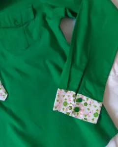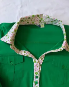Camisa verde con flores. Bonita camisa talla L , manga larga , pero se puede doblar trae sus tiras para abotonar y no se desdoble , cierre lateral , muy buen estado