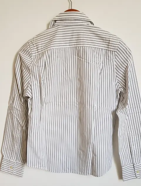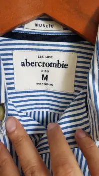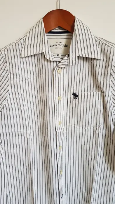 Camisas Abercrombie niño talla 6/7 años. Par decamisas para niños talla M 6/7 años aprox. Una es azul con líneas blancas, la otra es blanca con líneas grises Medidas: hombros 35cm57cm de largo44cm de axila a axila