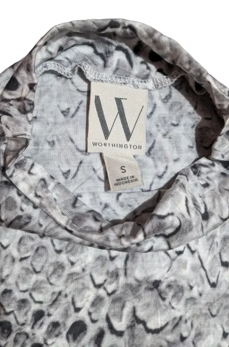 🌻 Camiseta de manga larga cuello alto 🖤🩶. 🌻 Camiseta Worthington de manga larga cuello alto 🙂 estampado animal, serpiente 👌🌻Tela elástica 😉🌻 Talla S pero también puede quedar a una talla M 😉👌🌻Uso diario, casual, también puedes usarlo de formal en una fiesta, hogar, escuela, salida nocturna 👌😉🌻 Súper cómoda y hermosa 😍🌻¡Te encantará!