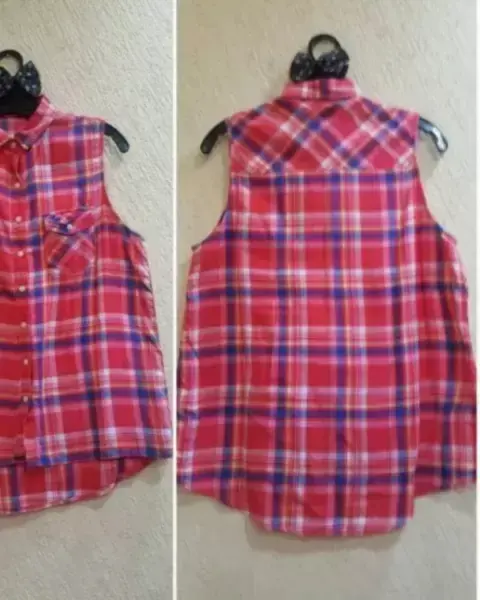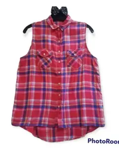 Bonita camisa roja a cuadros, de franela delgadita Abercrombie, sin mangas y un poco mas larga de atrás*Talla M*Sin detalles**Calificación: 10***GRACIAS POR TU PREFERENCIA*