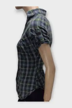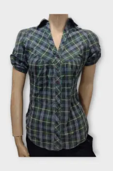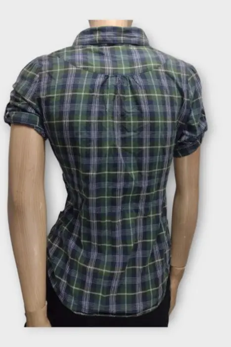 CHARLOTTE RUSSE Camisa Dama Algodón Verde MMarca: CHARLOTTE RUSSEOrigen: IndiaMaterial: 100% AlgodónTalla: MEstilo: CamisaPatrón: EscocesColor: Verde y NegroCierre: BotónPecho: 50 cmLargo: 64 cmHombro: 36 cmManga: 23 cmRopa de USO en muy buen estado