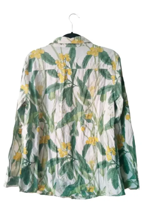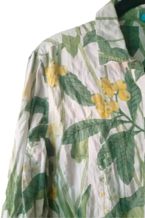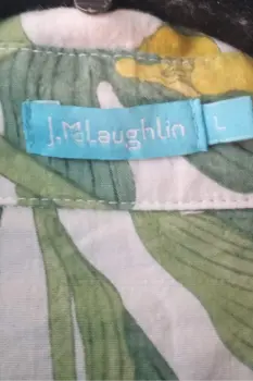 Camisa con estampado de plantas y frutos, con manga larga, ligera, de la marca J.McLaughlin talla L. El producto es usado en excelentes condiciones sin detalles. Proviene de un hogar libre de humo de tabaco y mascotas.Medidashombros: 43 cmssisa: 57 cmscadera: 58 cmslargo: 71 cms99% algodón, 1% spandex