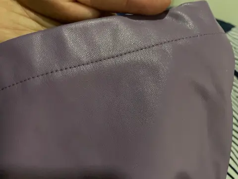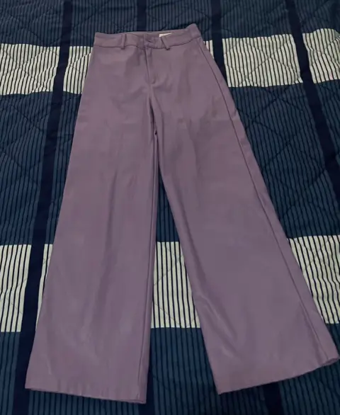 Pantalón efecto piel, bolsas atrás, tipo pata de elefante, queda arriba de los tobillos y también a la cintura Súper bonito