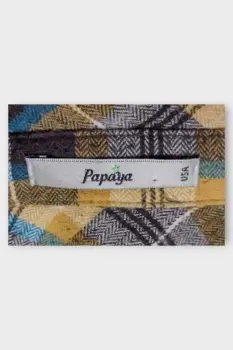 Papaya Camisa Dama 100% Algodón LCamisa marca Papaya 100% AlgodónMarca: PapayaOrigen: VietnamMaterial: 100% AlgodónTalla: LEstilo: CasualPatrón: CuadrosColor: Blanco, Marrón Azul Cierre: BotónPecho: 47 cmLargo: 62 cmHombro: 39 cmManga: 59 cmRopa de USO en muy buen estado