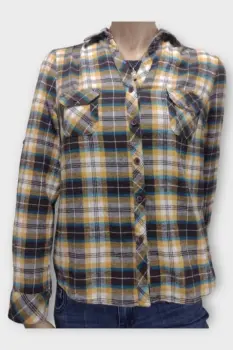 Papaya Camisa Dama 100% Algodón L. Papaya Camisa Dama 100% Algodón LCamisa marca Papaya 100% AlgodónMarca: PapayaOrigen: VietnamMaterial: 100% AlgodónTalla: LEstilo: CasualPatrón: CuadrosColor: Blanco, Marrón Azul Cierre: BotónPecho: 47 cmLargo: 62 cmHombro: 39 cmManga: 59 cmRopa de USO en muy buen estado