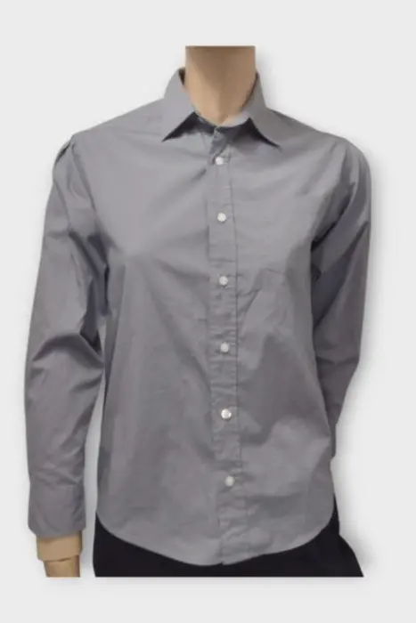 PERRY ELLIS Camisa Dama Algodón Gris L 14Marca: PERRY ELLISOrigen: El Salvador Material: 55% Algodón 45% PolyesterTalla: L - 14Estilo: CamisaPatrón: CamisaColor: GrisCierre: BotónPecho: 44 cmLargo: 62 cmHombro: 37 cmManga: 52 cmRopa de USO en muy buen estado