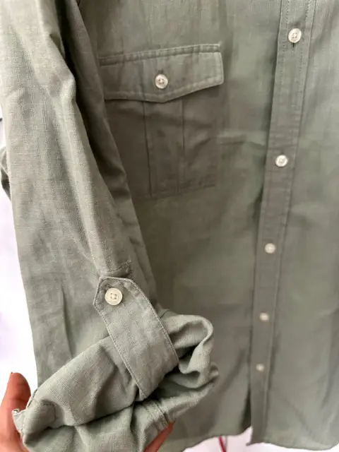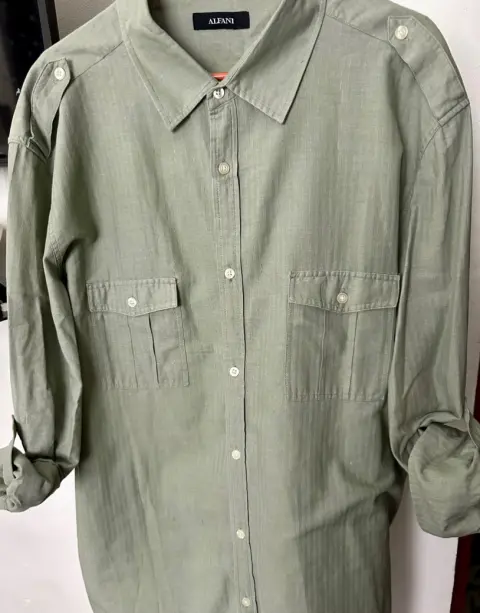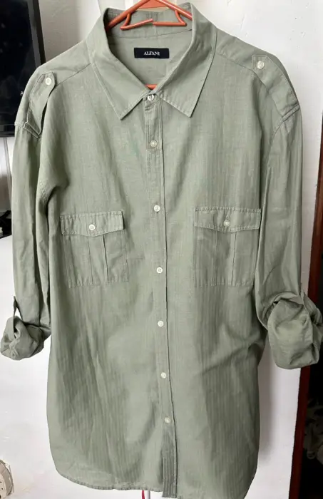 Sobre camisa color verde seco, manga larga y se ajusta de las talla XL queda padrísima