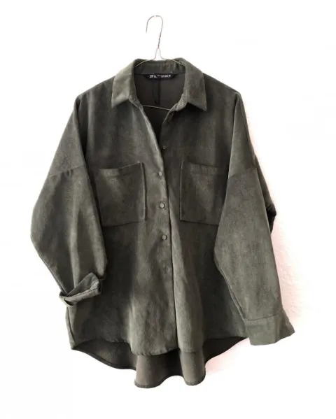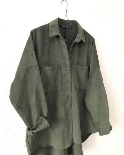 Sobre camisa verde zara. Color kaki. Talla xs, es larga queda abajo de las pompis, muy bonita, para combinar con todo 💓