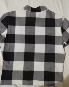 Top de manga de casquillo de guingan de cuello alt