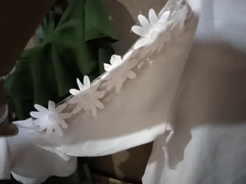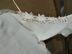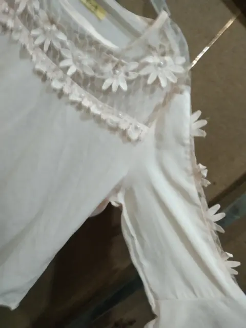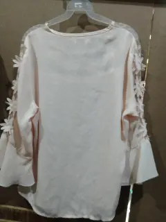 Camisa casual fresca, color rosa claro o pastel ,con flores y perlas completas.