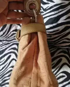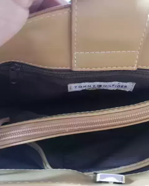 Bolsa Tommy hilfiger. Hermosa bolsa de tela tipo gamuza es de hombro el color es tal como se ve en fotos medida de largo 30 CM de alto 8 CM con compartimientos adentro uno con Viper en medio en los broches treen la marca y en los aros está limpia por dentro y por fuera está nueva sin ningún detalle