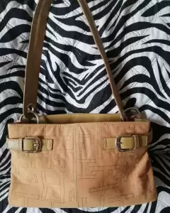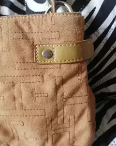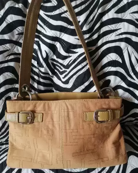 Hermosa bolsa de tela tipo gamuza es de hombro el color es tal como se ve en fotos medida de largo 30 CM de alto 8 CM con compartimientos adentro uno con Viper en medio en los broches treen la marca y en los aros está limpia por dentro y por fuera está nueva sin ningún detalle