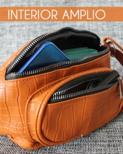 Cangurera café nueva, amplia, bonita y suave, correa ajustable