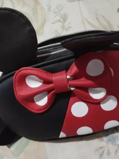 Bonita cangurera es para dama , con detalles semejantes a Minnie . Tiene compartimentos para que puedas guardar todo lo necesario . Linda y original
