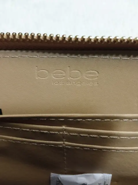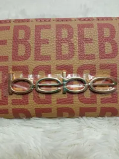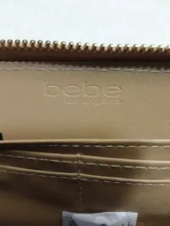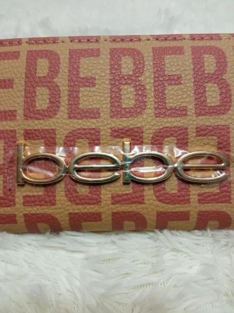 Bebe cartera de pulsera Moana Wristeltl.. Descripción:Cartera de pulsera marca Bebe Moana Wristeltl color vainilla con cremallera dorada. Logo bebé metálico.Medidas: 10 cm de alto, 20cm de largo y 3 cm de ancho.Exterior texturizado en piel sintética, y en el interior tela suave el poliéster cuenta con 12 ranuras para tarjetas, 2 compartimientos para billetes y una bolsa con cremallera.
