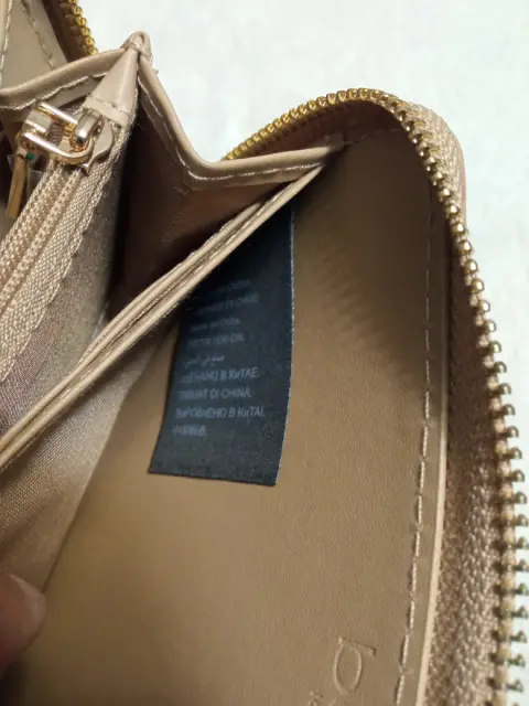 Descripción:Cartera de pulsera marca Bebe Moana Wristeltl color vainilla con cremallera dorada. Logo bebé metálico.Medidas: 10 cm de alto, 20cm de largo y 3 cm de ancho.Exterior texturizado en piel sintética, y en el interior tela suave el poliéster cuenta con 12 ranuras para tarjetas, 2 compartimientos para billetes y una bolsa con cremallera.