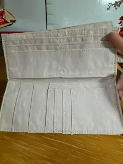 Pasa por nueva, no trae monito, con espacio para tarjetas, monedero y billetes.