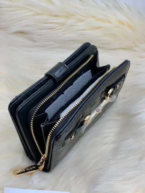 HERMOSA CARTERA CHICA ANNE KLEIN EN COLOR NEGRO CON DORADO DE CIERRE Y BROCHE , TARJETERO! ES NUEVA SIN DETALLES CON ETIQUETA 🏷️