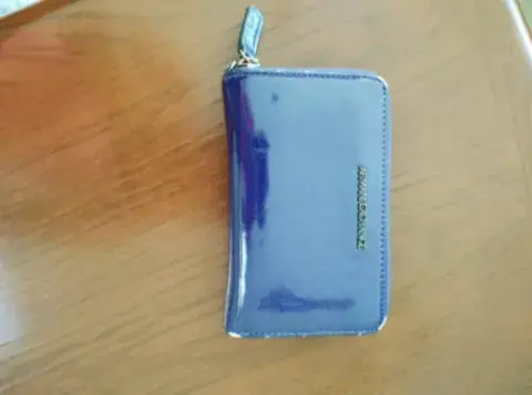 Cartera Armani Exchange, color azul rey, tipo charol. Por su tamaño es muy cómoda. Mide aprox. 24.5cms. de largo x 10.5cms. De ancho. Tiene espacio para tarjetas, billetes y monedas. No tiene cierre interior, el cierre funciona perfectamente. Tiene detalles de desgaste en las orillas, no cuenta con la correa.