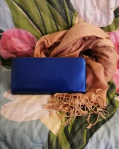 Bonita cartera azul rey, esta en buen estado detalles mínimos se ven en las fotos, no perjudican nada su uso