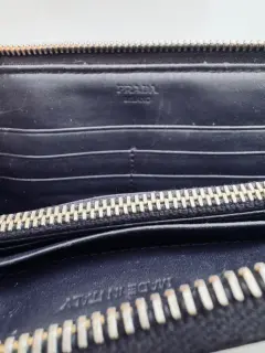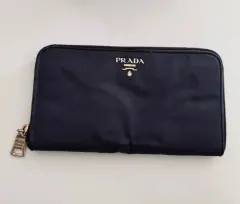 Cartera billetera vintage Prada Milano. Cartera negra vintage Prada milano.Lona por fuera con filo de piel charol, por dentro es toda de piel.Parte interna monedero con cremallera y dos compartimentos para billetes y 12 compartimentos para tarjetas.Tiene signos visibles de desgaste en sus herrajes y lona visibles en las fotografías.Considera el desgaste de un producto vintage. Las fotografías son tomadas sin filtros,se toman fotografías y video desde el empaque y al momento de que está en paquetería, para de esta manera evitar futuros malos entendidos. Revisa la descripción con detenimiento para que tu compra llene todas tus espectativas.