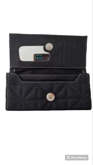 Cartera sintética ,con apartados para tarjetas ,dos espacios con cierre y espejo ,incluye monedero aparte .