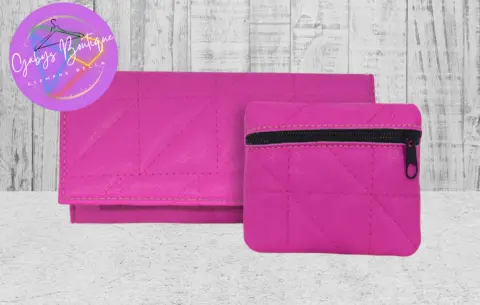 Cartera bugambilia. Cartera sintética ,con apartados para tarjetas ,dos espacios con cierre y espejo ,incluye monedero aparte .