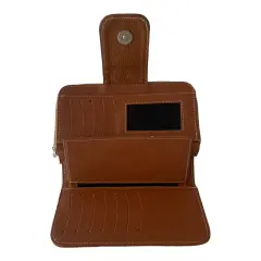 Cartera de piel con espacio para tarjetas, monedas y billetes. Tiene espejo.Medidas: 19x 9.5x 4