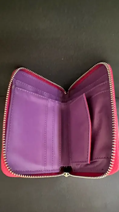Cartera chica de cierre sencillo Cloe, tiene espacio para monedas, tarjetas y doble espacio para billetes, se usó muy pocas veces.