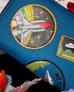 Cartera Coach. Cartera Coach con Stickers espáciales, nueva, caja, cubrepolvo, certificado