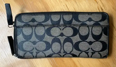 Cartera Coach en lona estampada. Categoría vintage, muy cuidada, nada mas le falta la jaladerita del cierre del monedero,