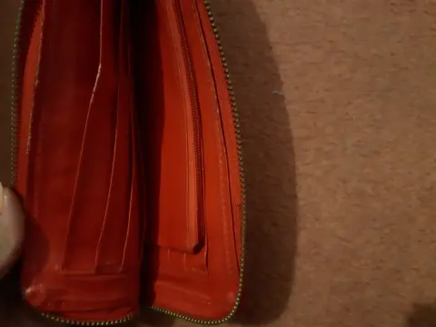 Cartera color rojo. Cartera grande de color rojo charol con k de nitas en el cierre