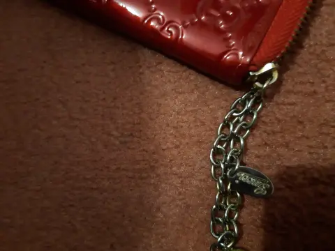 Cartera grande de color rojo charol con k de nitas en el cierre