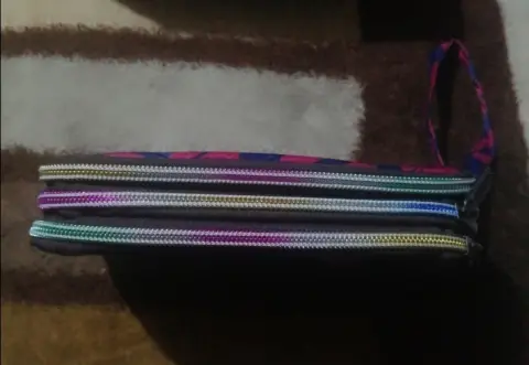 🤑Cartera con triple Cierre🤑. 🛍️Hermoso Bolsito Cartera para tarjetas, dinero, teléfono entre otros, tiene estampado de Besos, realmente bello y muy útil es de Poliester, Animate a estrenar este regreso a clases, se manda detallitos en la compra 🤩