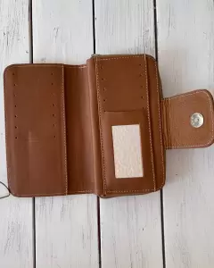 Cartera hecha en México de piel color café.Medidas: 19 cm de largo, 10.5 cm de alto y 2.5 cm de grueso.La cartera es nueva y cualquier detalle que puede tener se ven en fotos