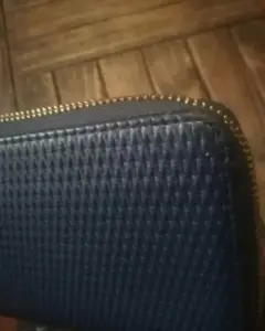 Linda cartera azul marino en imitaciónde piel, está en muy buen estado sóloun poco raspada de las esquinasy el logo pero no se nota a simple vista ya que es oscura, es el único detalle. *Mide 19x10cm**Calificación:8**GRACIAS POR TU PREFERENCIA*