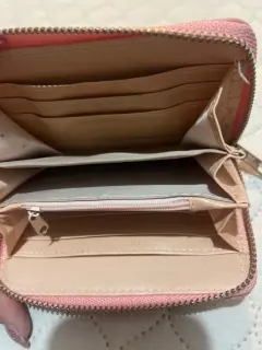 Hermosa cartera color durazno 🍑 con , compartimentó para tarjetas y para monedas al interior .Medias se dejan en las imágenes