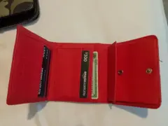 Cartera Lacoste roja en buen estado, muy práctica y bonita compartimentos para tarjetas, billetes y monedas