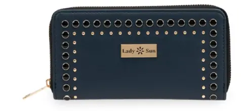 Cartera Lady Sun. Su forma rectangular y color azul la hacen el complemento perfecto para tu outfit. Cuenta con cierre de cremallera y en su interior tiene 4 compartimentos. Está hecha con materiales sintéticos de gran calidad que garantizan su durabilidad. En su exterior luce detalle de estoperoles y placa de la marca. Sus medidas son de 19 x 2 x 10 cm, el tamaño ideal que la lleves a donde quieras.
