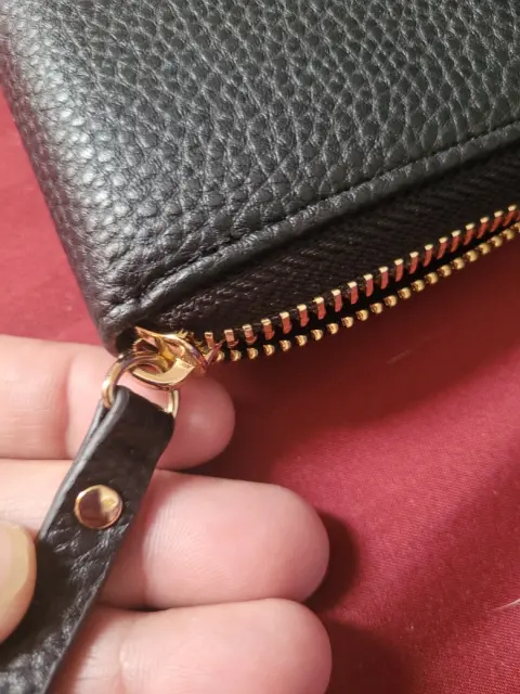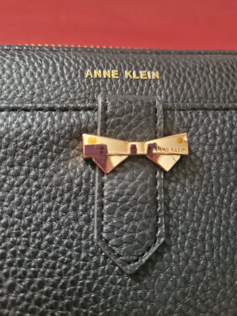 Bonita cartera grande de la marca Ann Klein, con cierre y un bello detalle de moño en el centro de la cartera. Trae compartimento para tarjetas