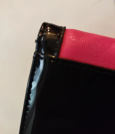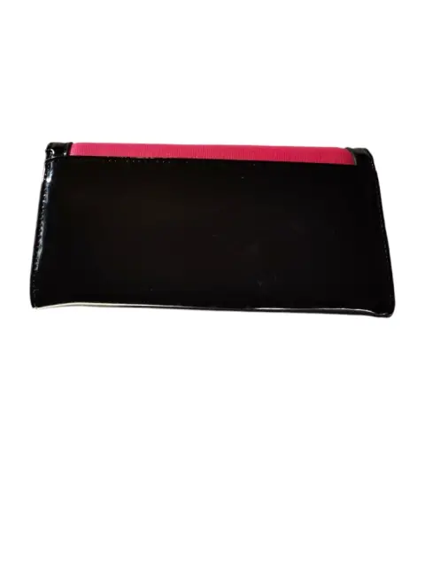 Linda cartera de charol con broche color rosa oscuro con negro está en perfecto estado solo tiene un ligerito desgaste hay foto al final del detalle pero prácticamente solo se usó en una ocasión es muy linda de la marca señor frogsLas medidas sonLargo 20Alto 11cmAncho 2cm